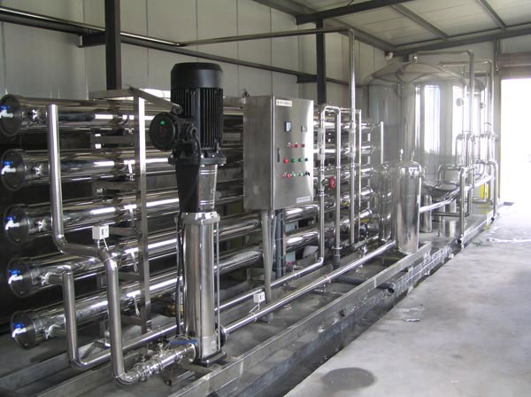 ☆ 自來水----水泵----多介質過濾器----活性炭過濾器----自動加藥裝置----保安過濾器----高壓泵----一級反滲透----中間水箱----高壓泵----二級反滲透----純水箱----純水泵